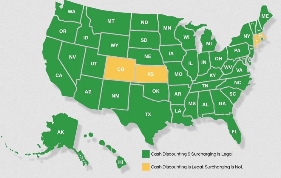 Los recargos están ganando rápidamente aprobación en todo Estados Unidos. Originalmente, había un total de 10 estados que prohibían los recargos, pero ahora solo hay 4. A partir de 2020, Colorado, Connecticut, Kansas y Massachusetts son los únicos estados que todavía no permiten a los comerciantes aplicar recargos. Anteriormente, estados como Texas y Nueva York prohibieron los recargos, pero los estados fallaron a favor de que los comerciantes se pusieran de su lado en la batalla contra las tarifas de procesamiento de tarjetas de crédito. En enero de 2019, el estado de Nueva York anuló la prohibición de cobrar recargos..